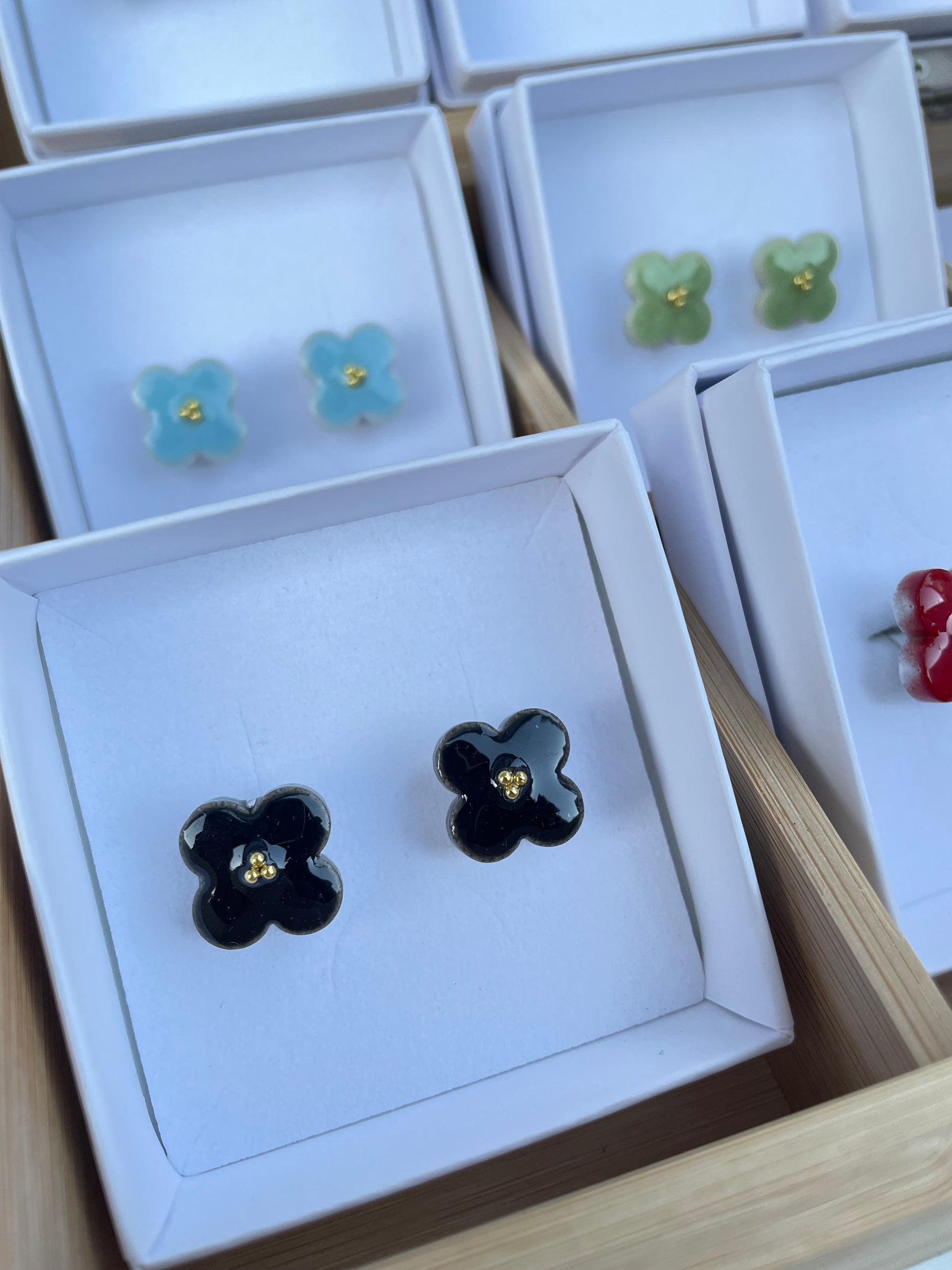 Ceramic flower earrings M Light Black