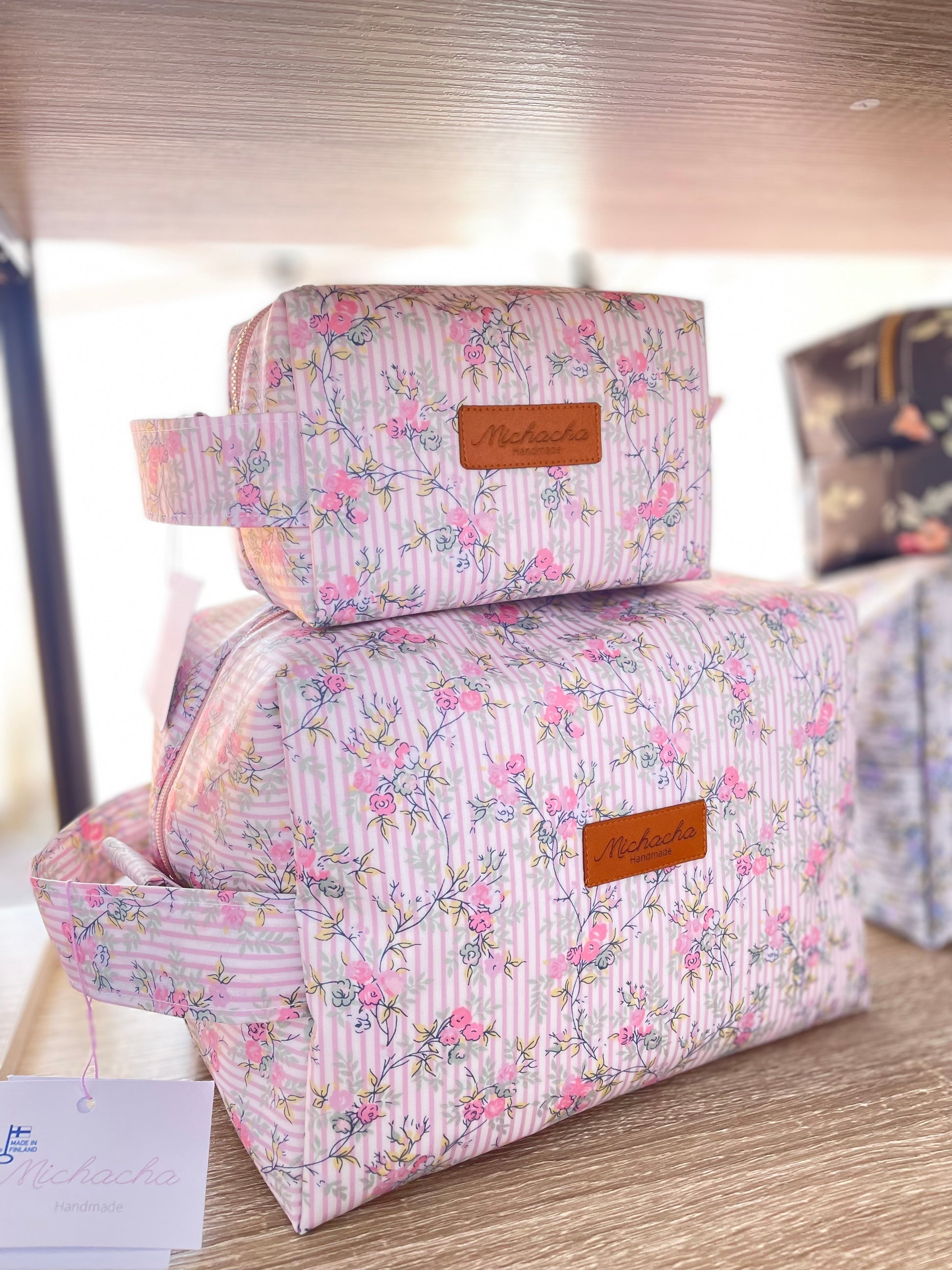 Both inside outside are used with water proof fabrics.This Big bag fits shampoo, face wash, small face towel, sun cream etc.Suitable to bring to the sauna, gym or pool/beach!Also good for baby diaper changing bag.(Since the bag has stitches, Not 100% waterproof)